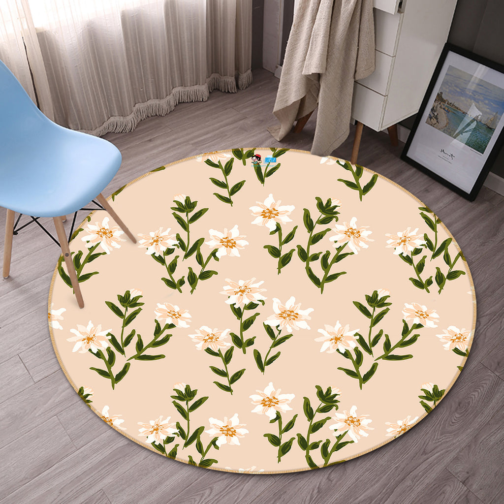 3D White Flower Clusters 10536 Kashmira Jayaprakash Rug Round Non Slip Rug Mat Sinsin