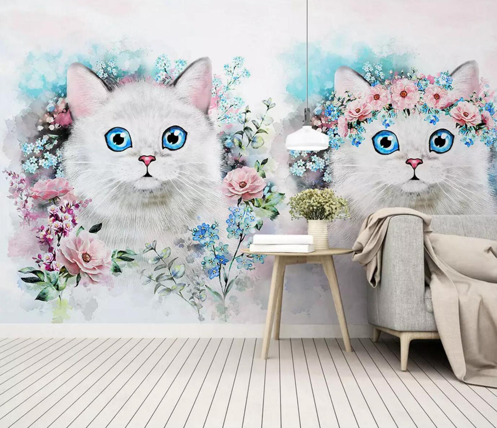 3D White Kitten Flower WC642 Wall Murals Zoe