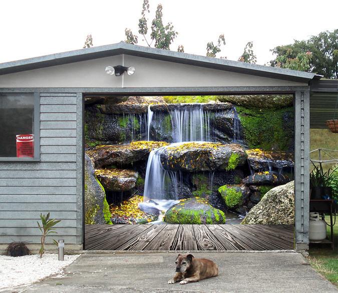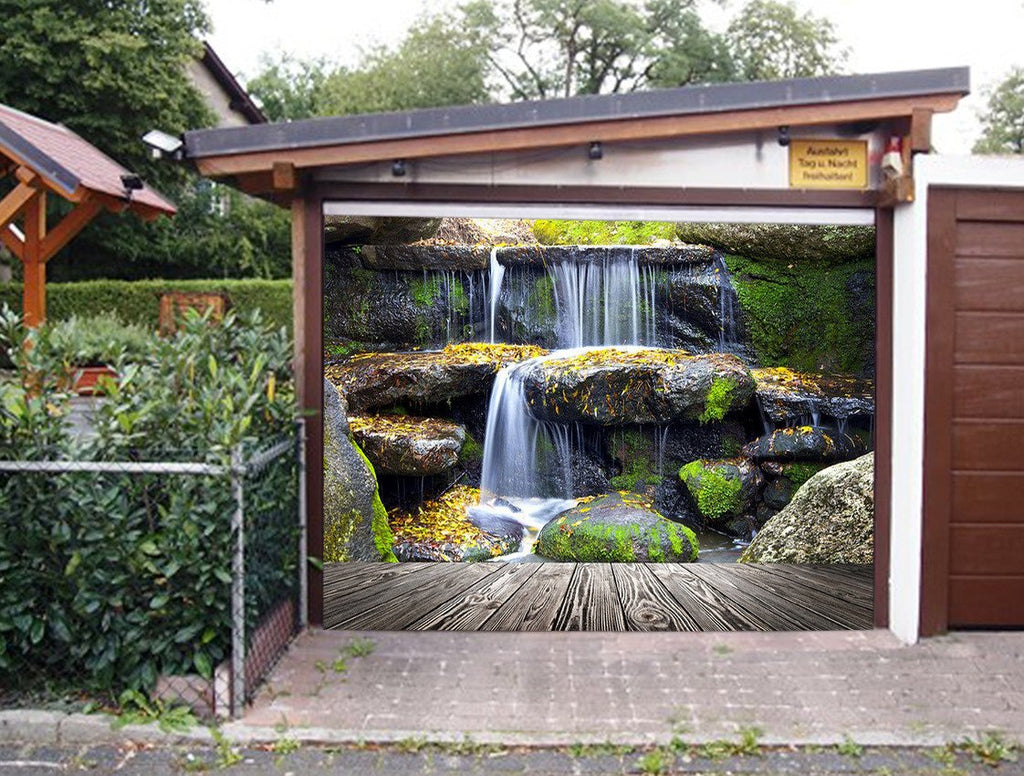 3D Wood Boards Rocks Waterfalls 302 Garage Door Mural