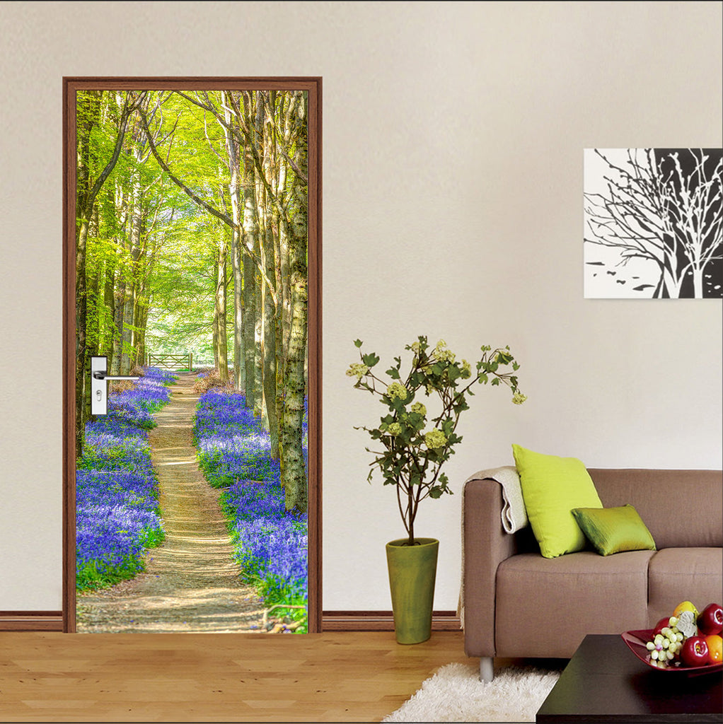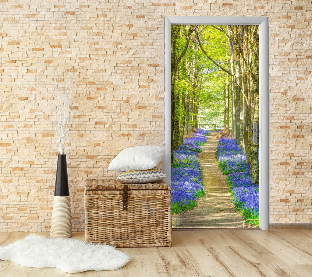 3D Woods Path Blue Flowers 10634 Assaf Frank Door Mural Sinsin