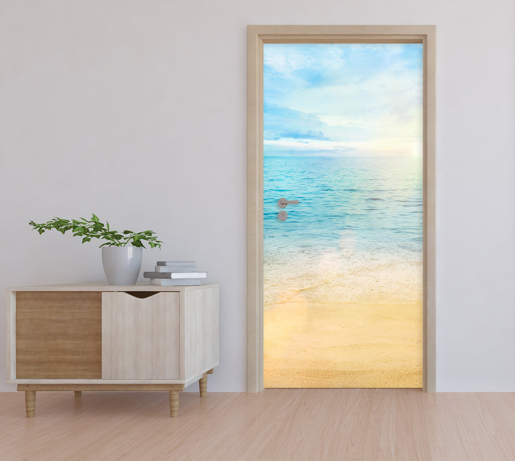 3D Yellow Beach Sea 094 Door Mural Zoe