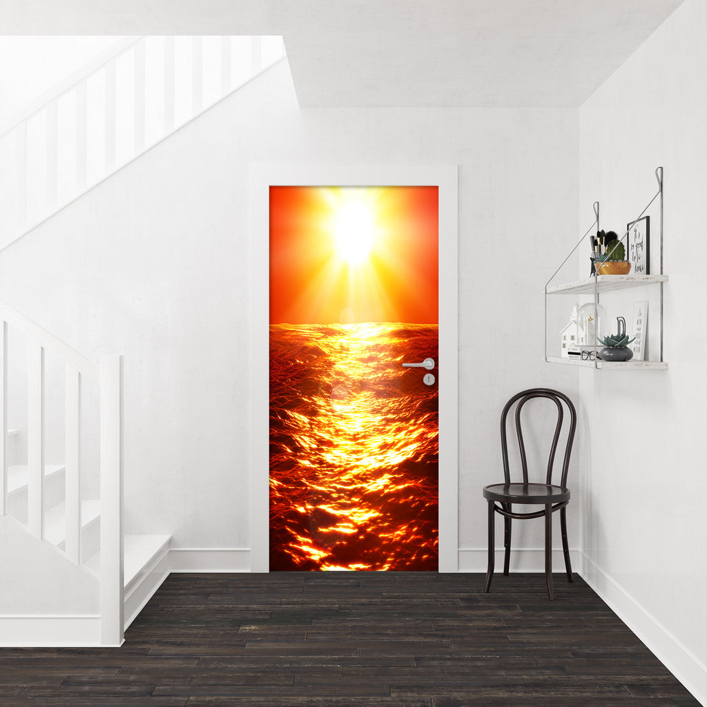 3D Yellow Sunset Sea 138 Door Mural Zoe