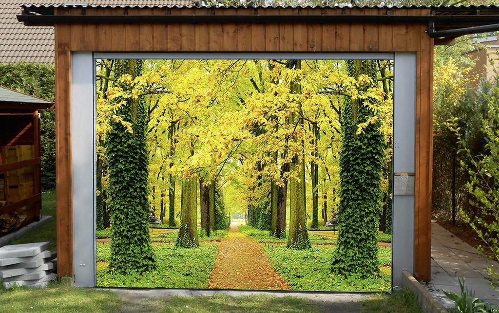 3D Yellow Tree Green Vine 64 Garage Door Mural