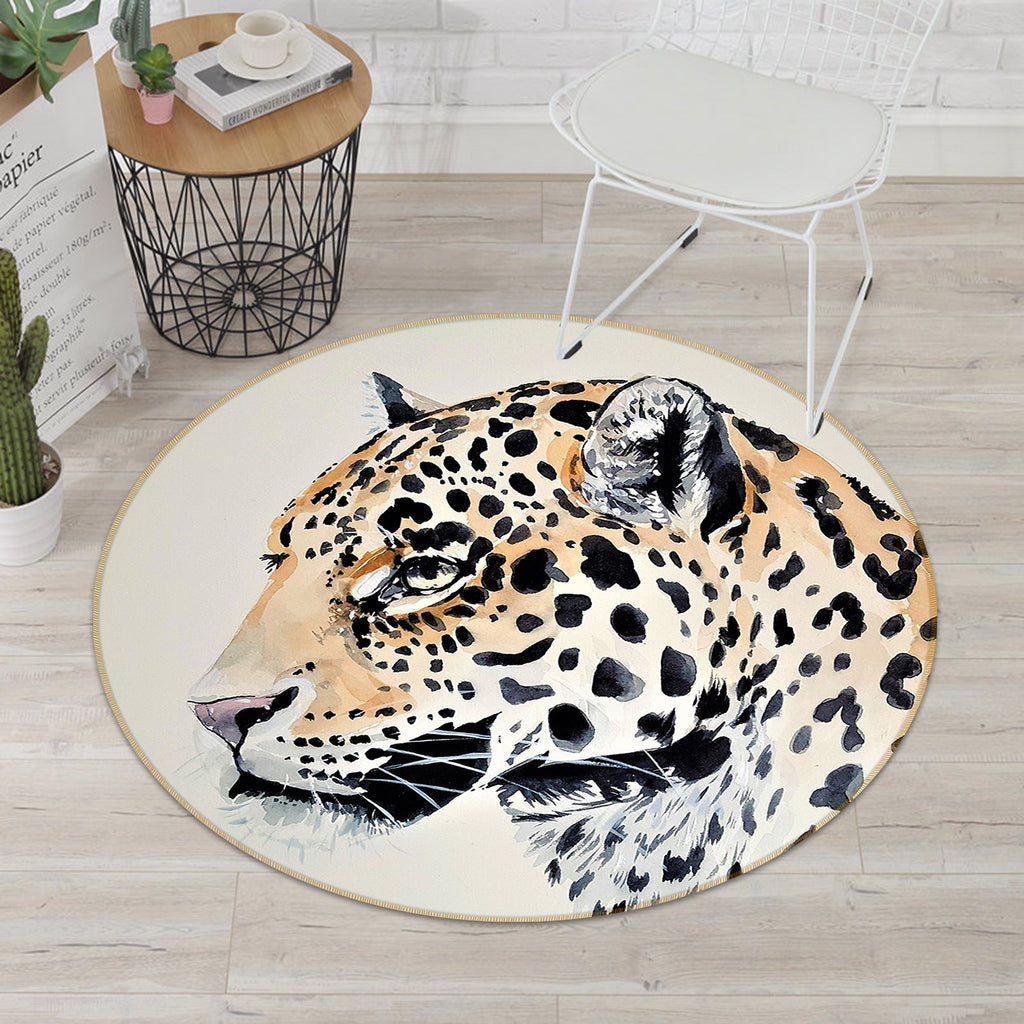 3D Leopard Head 073 Animal Round Non Slip Rug Mat