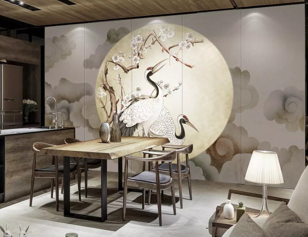 3D Moon White Crane 614 Wall Murals Dai