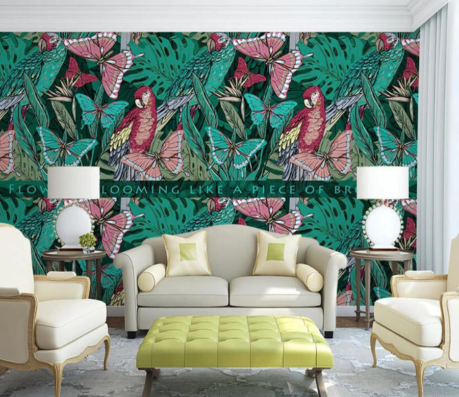 3D Parrot Butterfly WC1594 Wall Murals