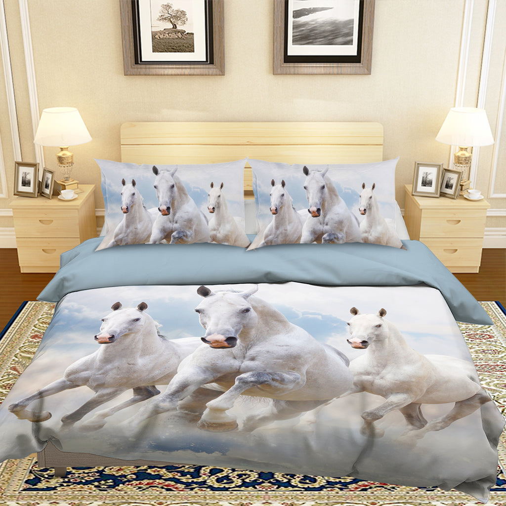 3D Running White Horse 066 Bed Pillowcases Quilt Zoe