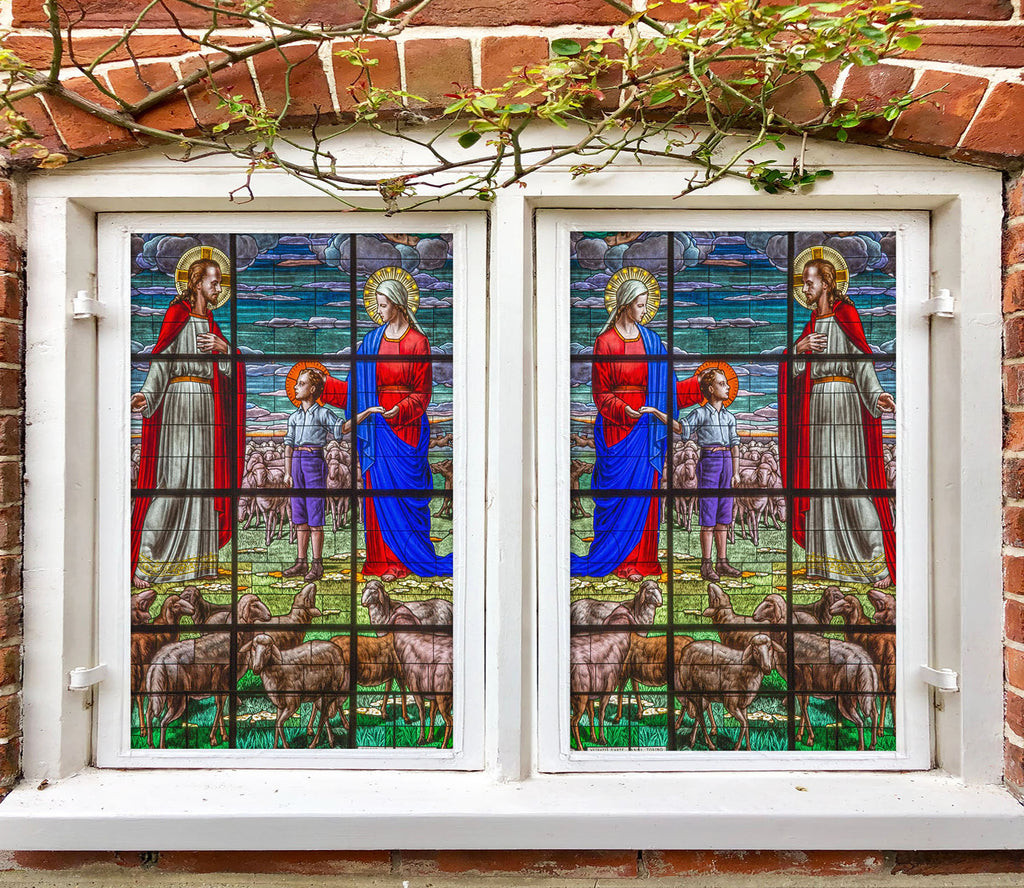 3D Sheep Group 039 Window Film Print Sticker Cling Stained Glass UV Block Zoe