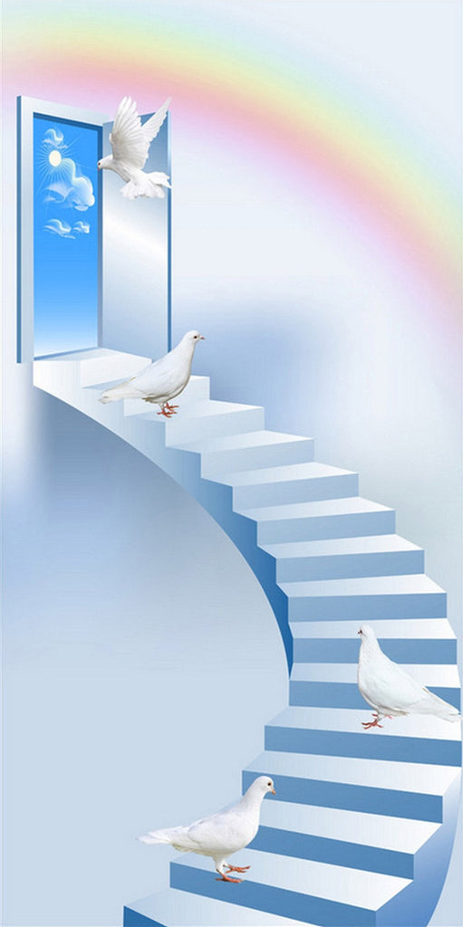3D Sky Stairs Birds Rainbow 91 Door Mural