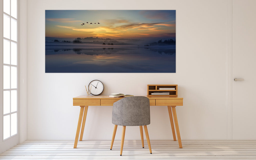 Make sure the wall surface is flat, clean and smooth. A clean and dry wall will help the adhesive from your wall mural to keep its stickiness. Put all panels on the ground, check the order. Measure and write down the dimensions of each panel. Mark vertical guidelines according to the panel's dimensions. Leave 2-3cm overlap between panels.