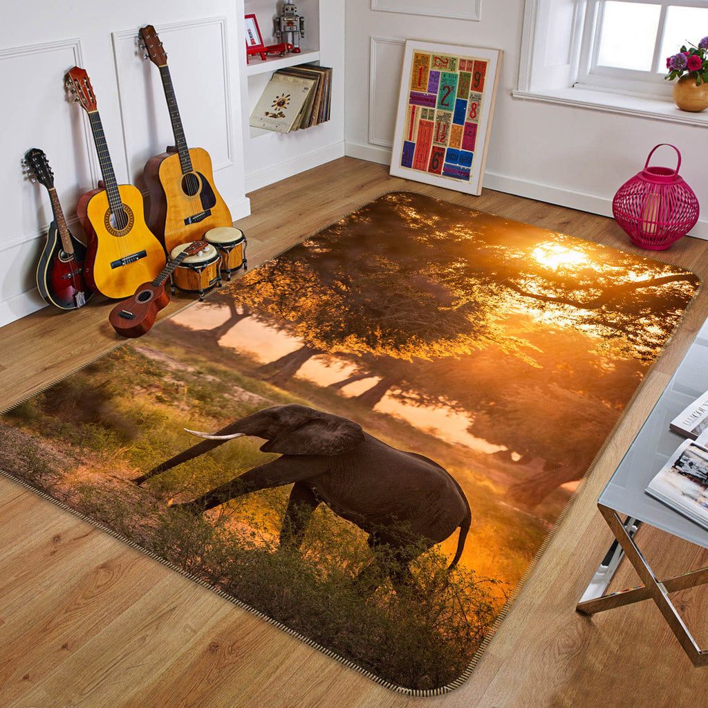 3D Sunset Tree Elephant 194 Animal Non Slip Rug Mat Zoe