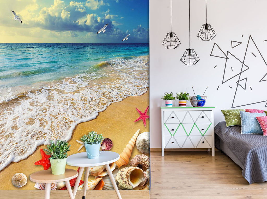 A clean and dry wall wil help the adhesive from your wall mural to keep its stickiness.Put all panels on the ground, check the order. Measure and write down the dimensions of each panel. Mark vertical guidelines according to the panel's dimensions. Leave 2cm overlap between panels.