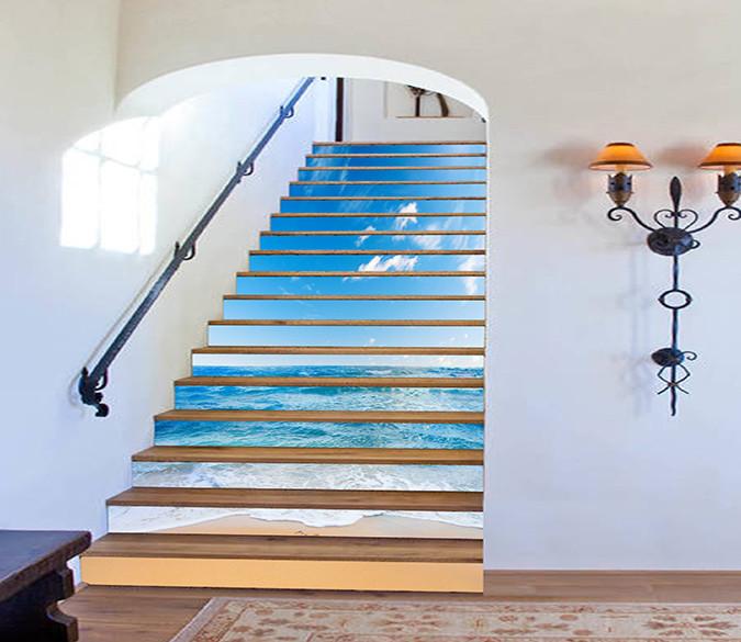 3D Blue Sea Sunny Sky 1299 Stair Risers