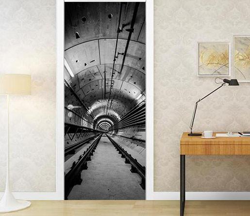 3D black space door mural