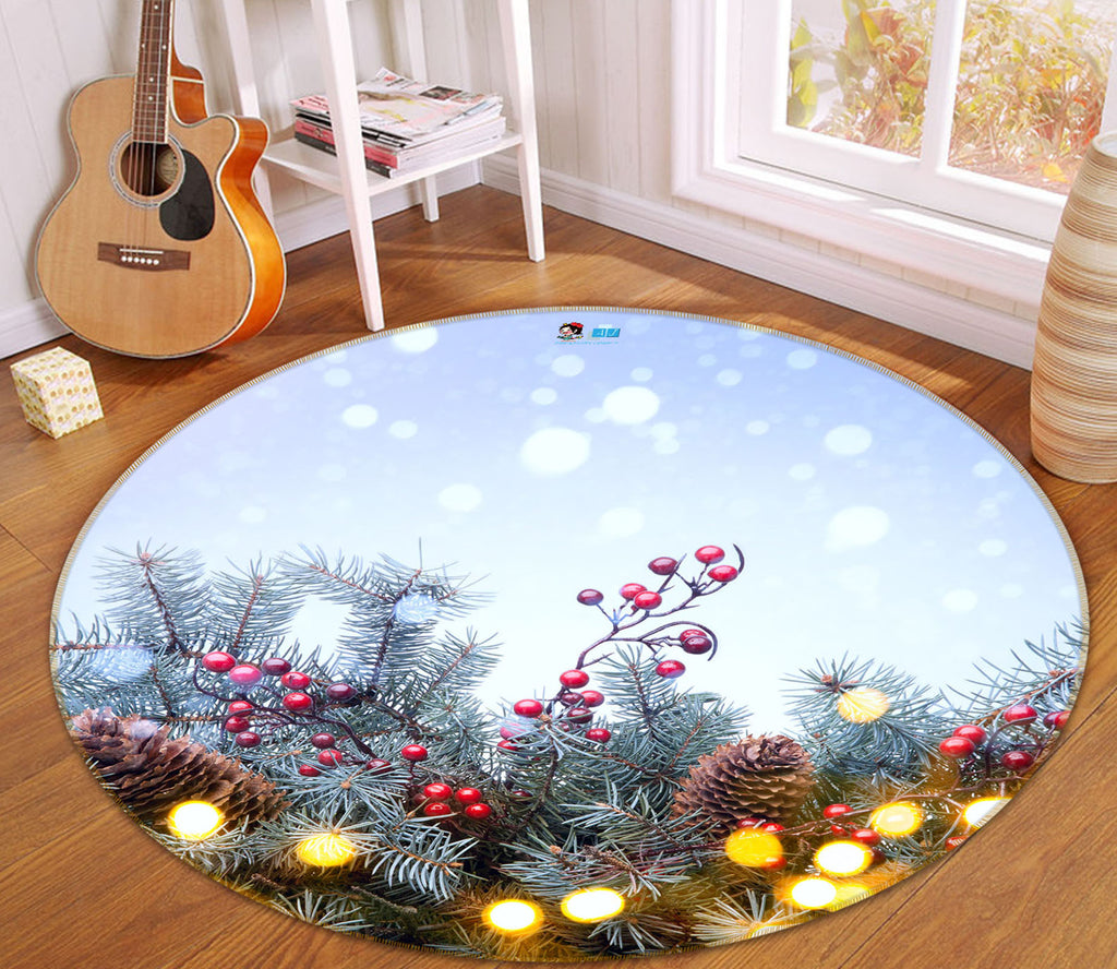 3D Branches 56024 Christmas Round Non Slip Rug Mat Xmas Sinsin