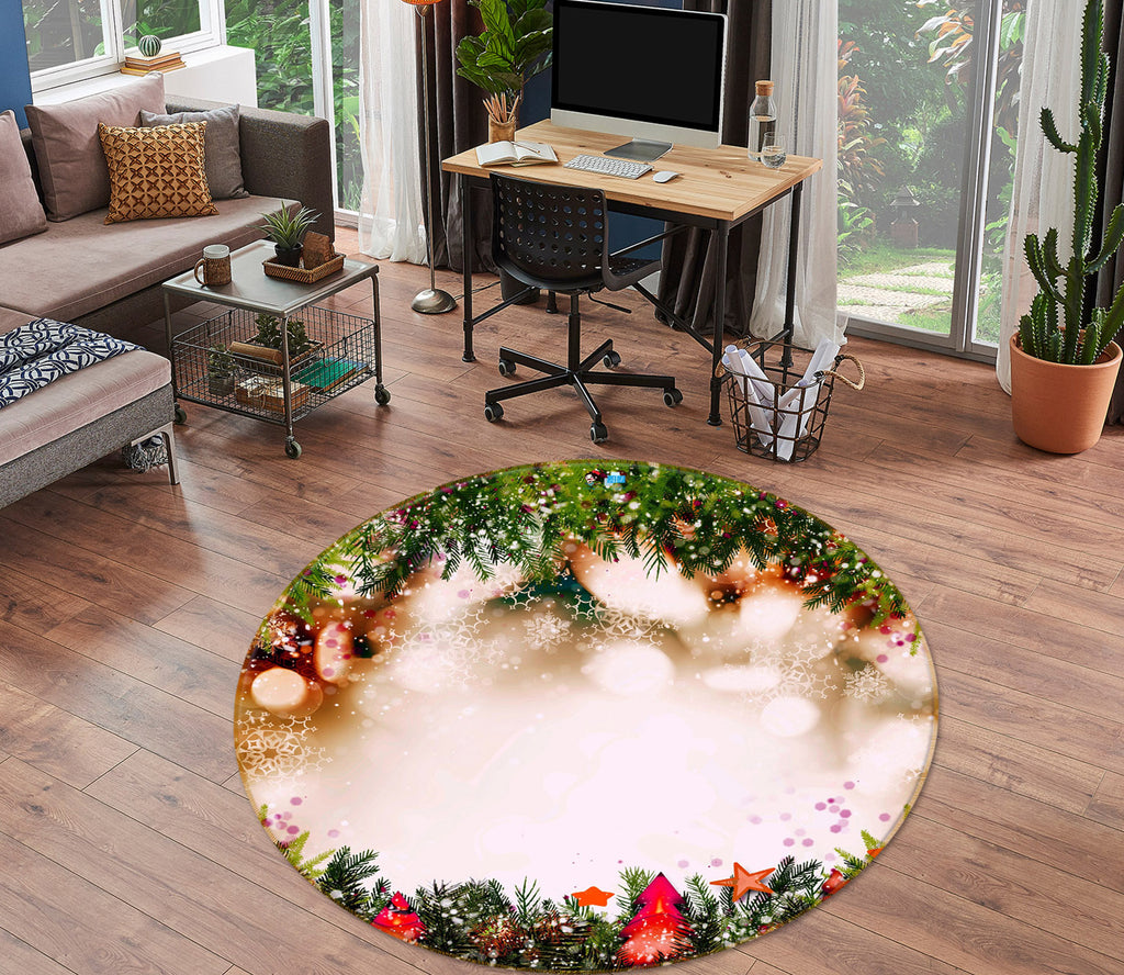 3D Branches 56042 Christmas Round Non Slip Rug Mat Xmas Sinsin
