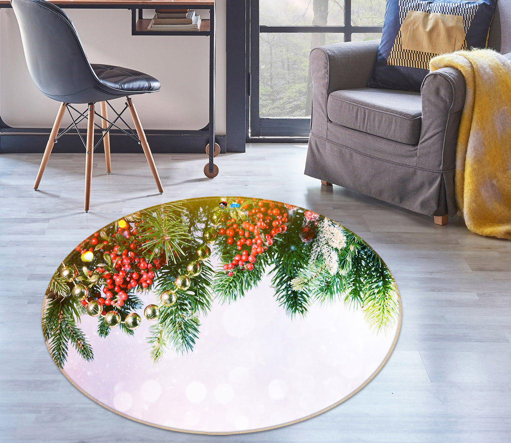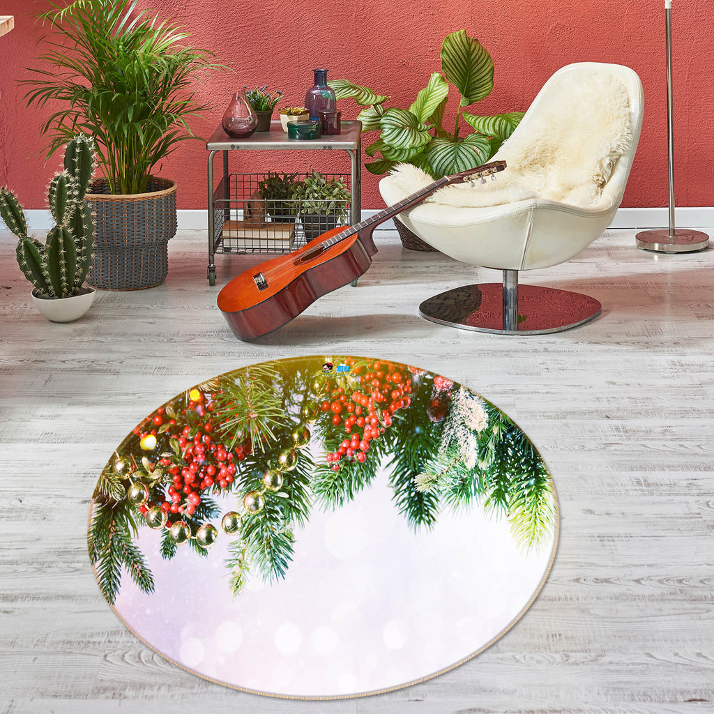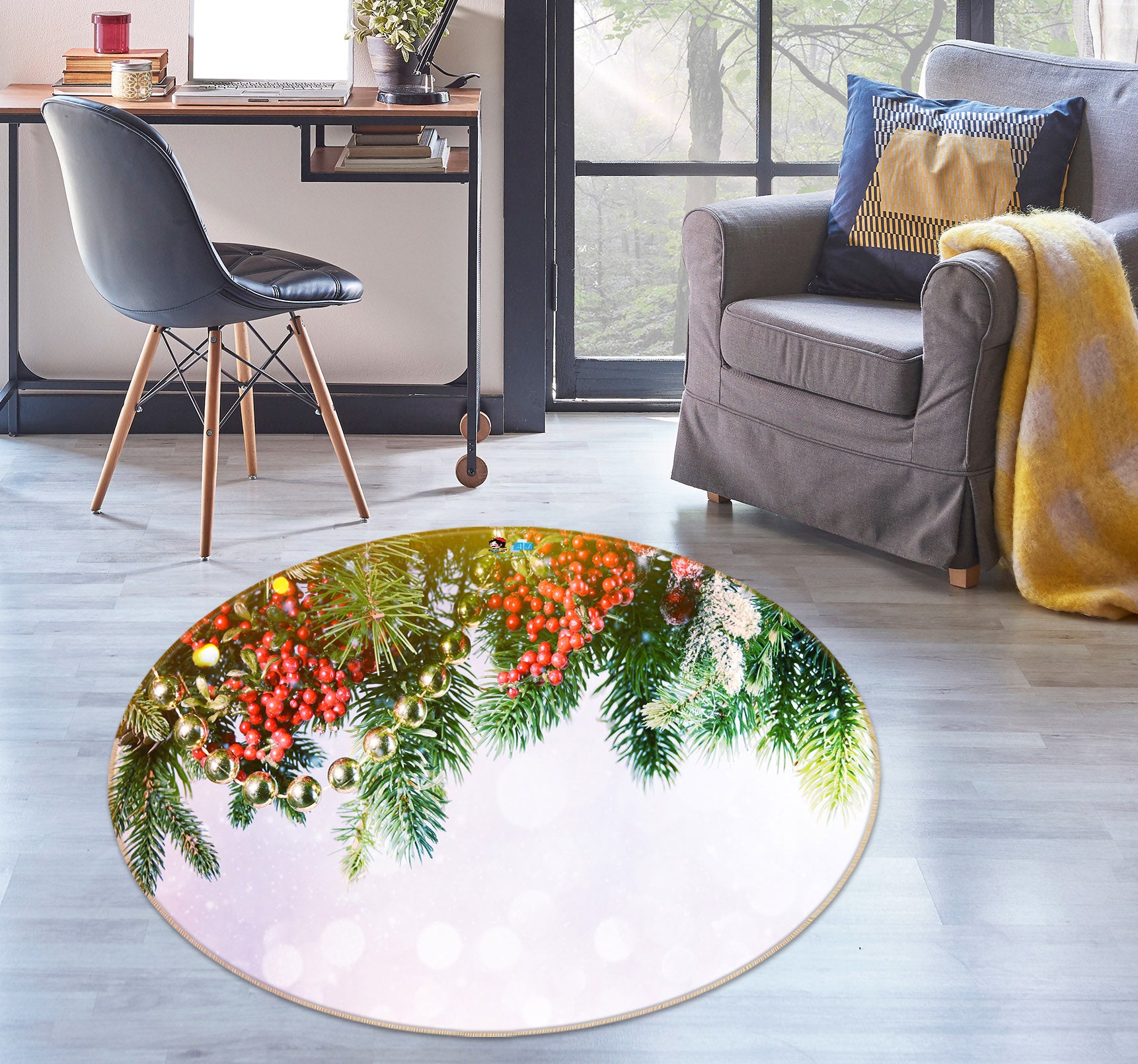 3D Branches 56051 Christmas Round Non Slip Rug Mat Xmas Sinsin