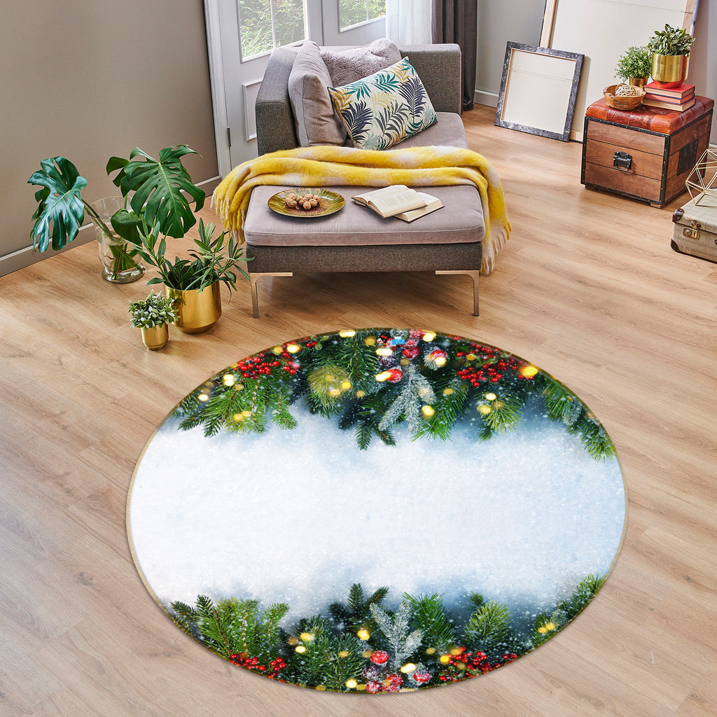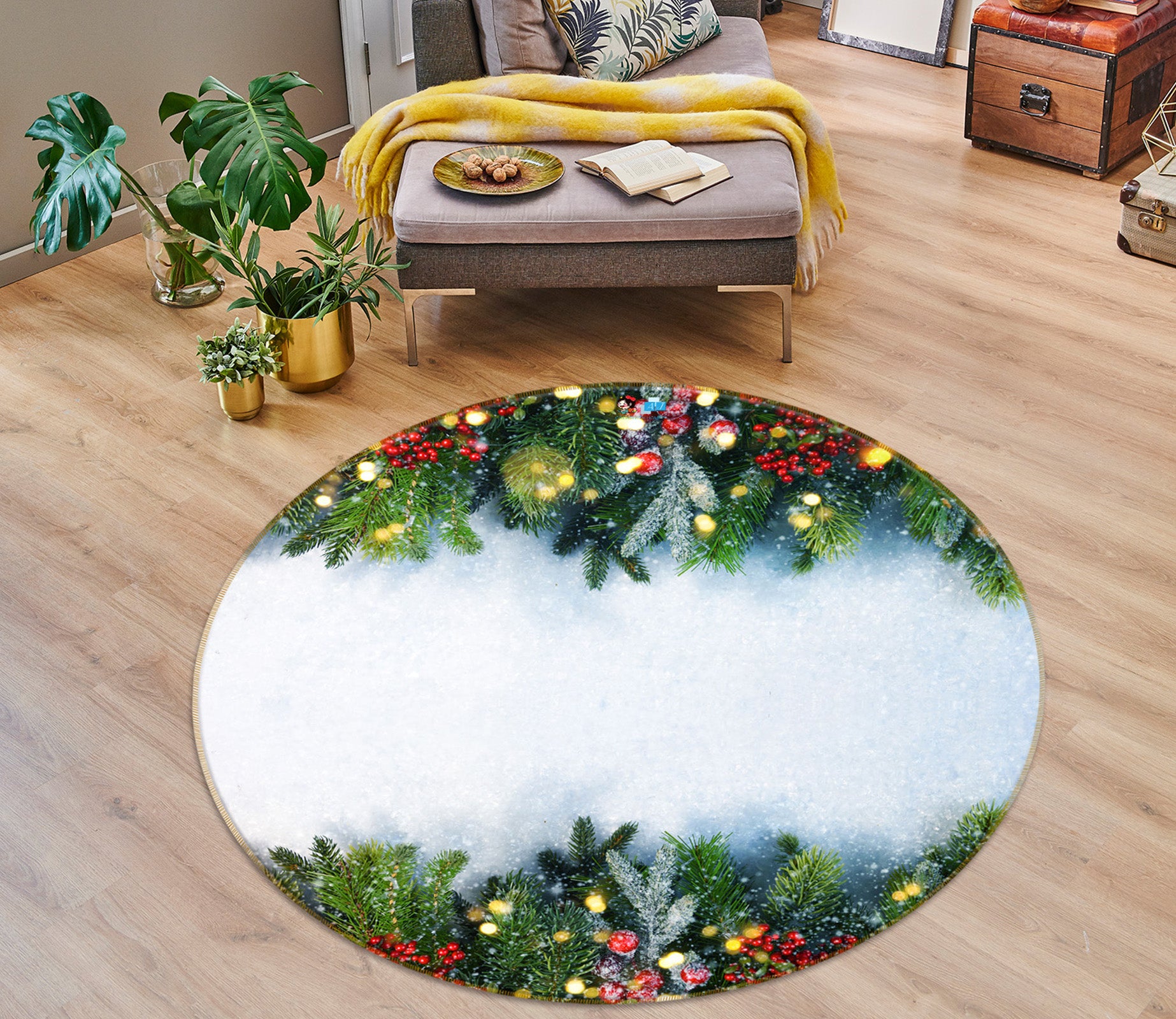 3D Branches Colorful Ball 56050 Christmas Round Non Slip Rug Mat Xmas Sinsin