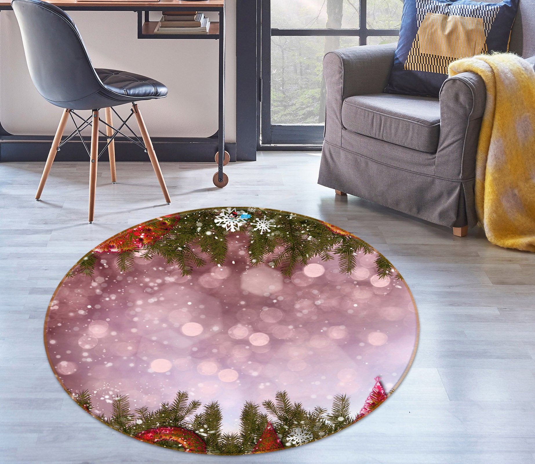 3D Branches Snowflake 56043 Christmas Round Non Slip Rug Mat Xmas Sinsin