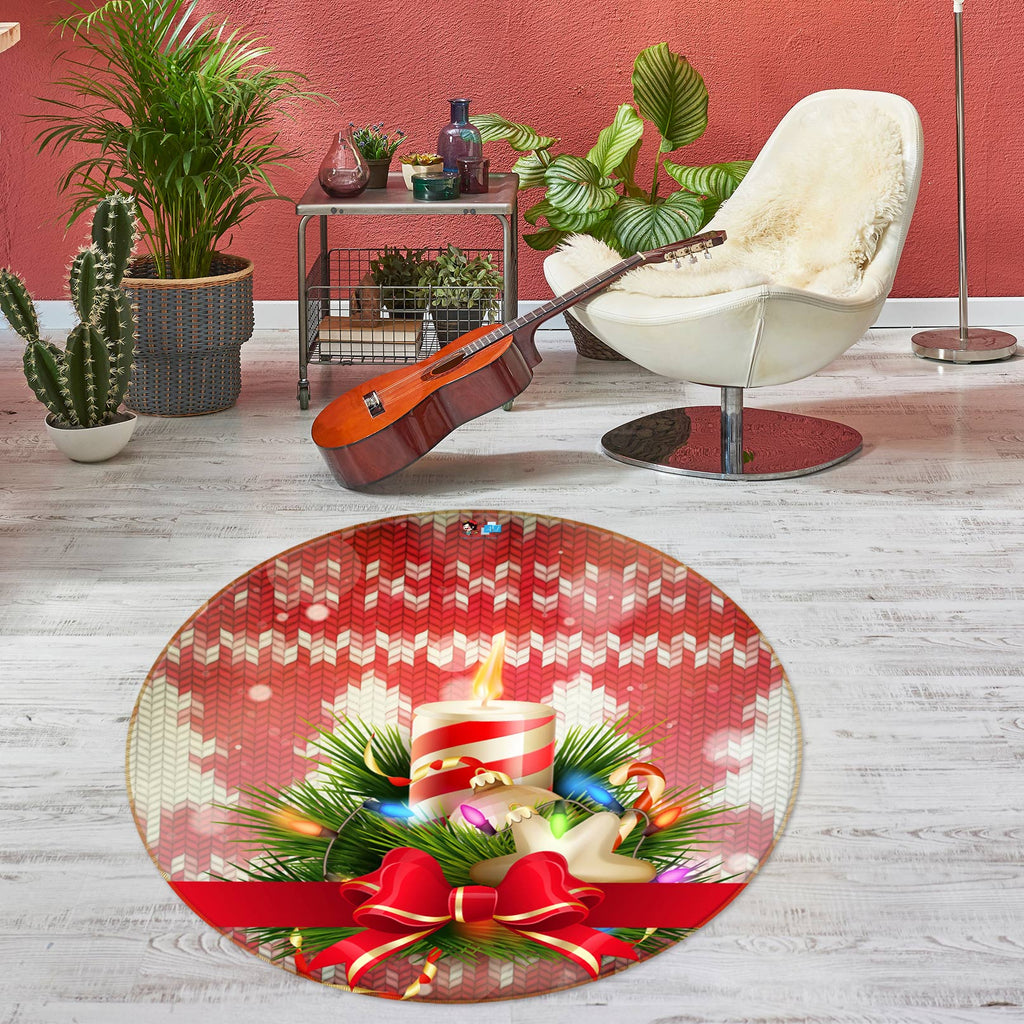 3D Candle Bowknot 55177 Christmas Round Non Slip Rug Mat Xmas Sinsin