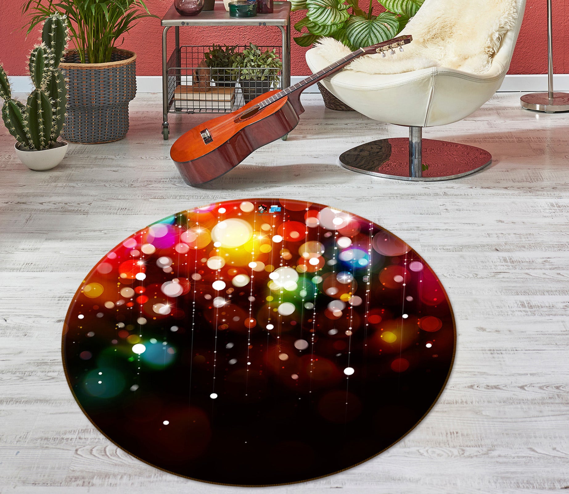 3D Color Aperture 56015 Christmas Round Non Slip Rug Mat Xmas Sinsin