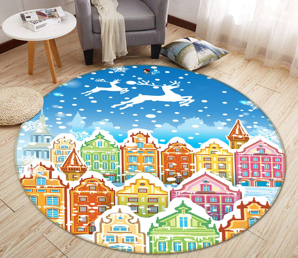 3D Colorful Houses 56026 Christmas Round Non Slip Rug Mat Xmas Sinsin