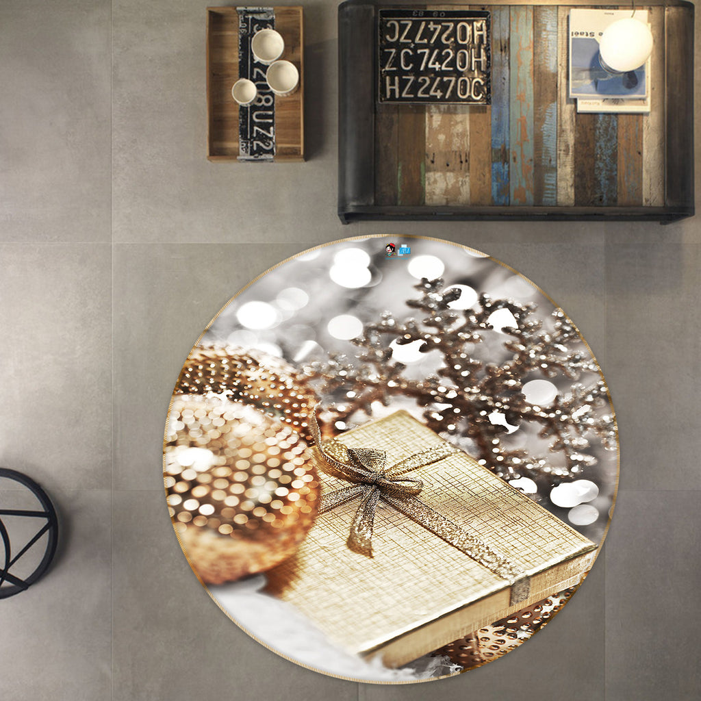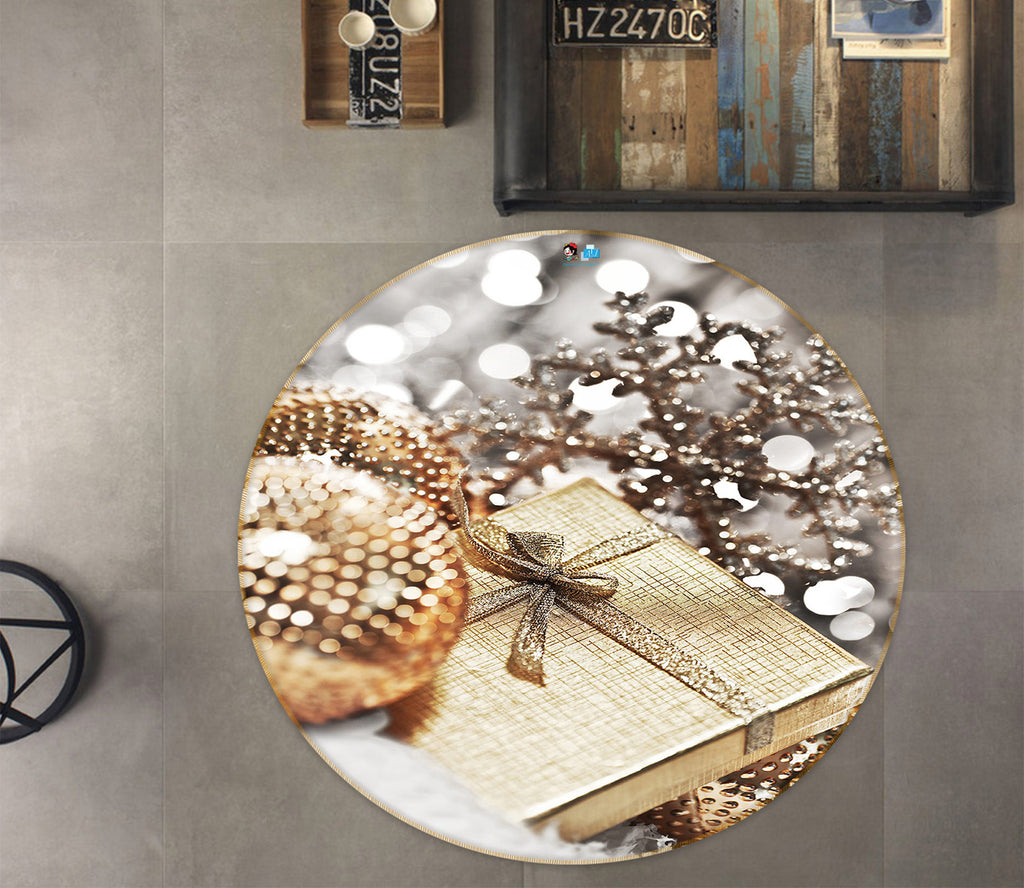3D Golden Ball Gift Box 55163 Christmas Round Non Slip Rug Mat Xmas Sinsin