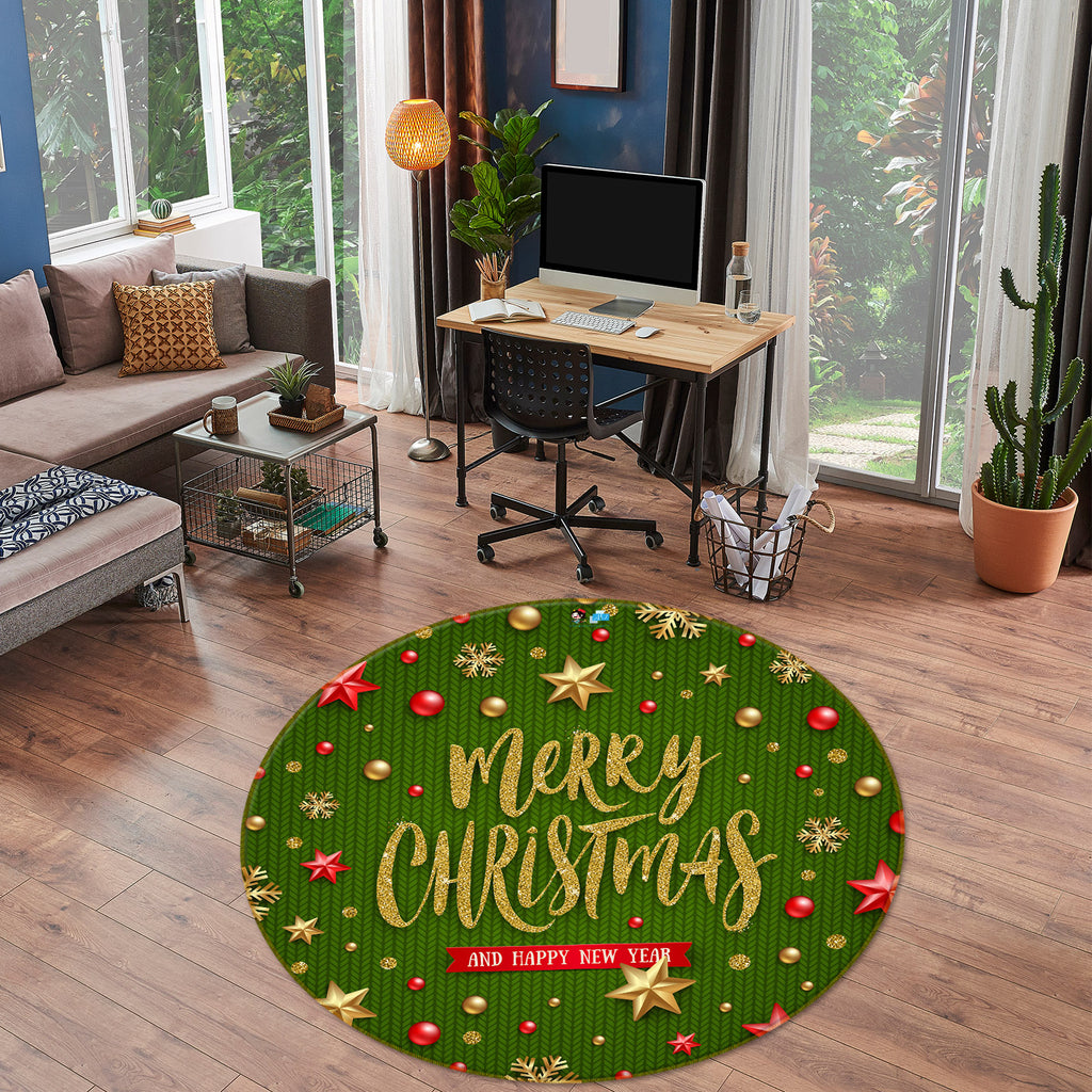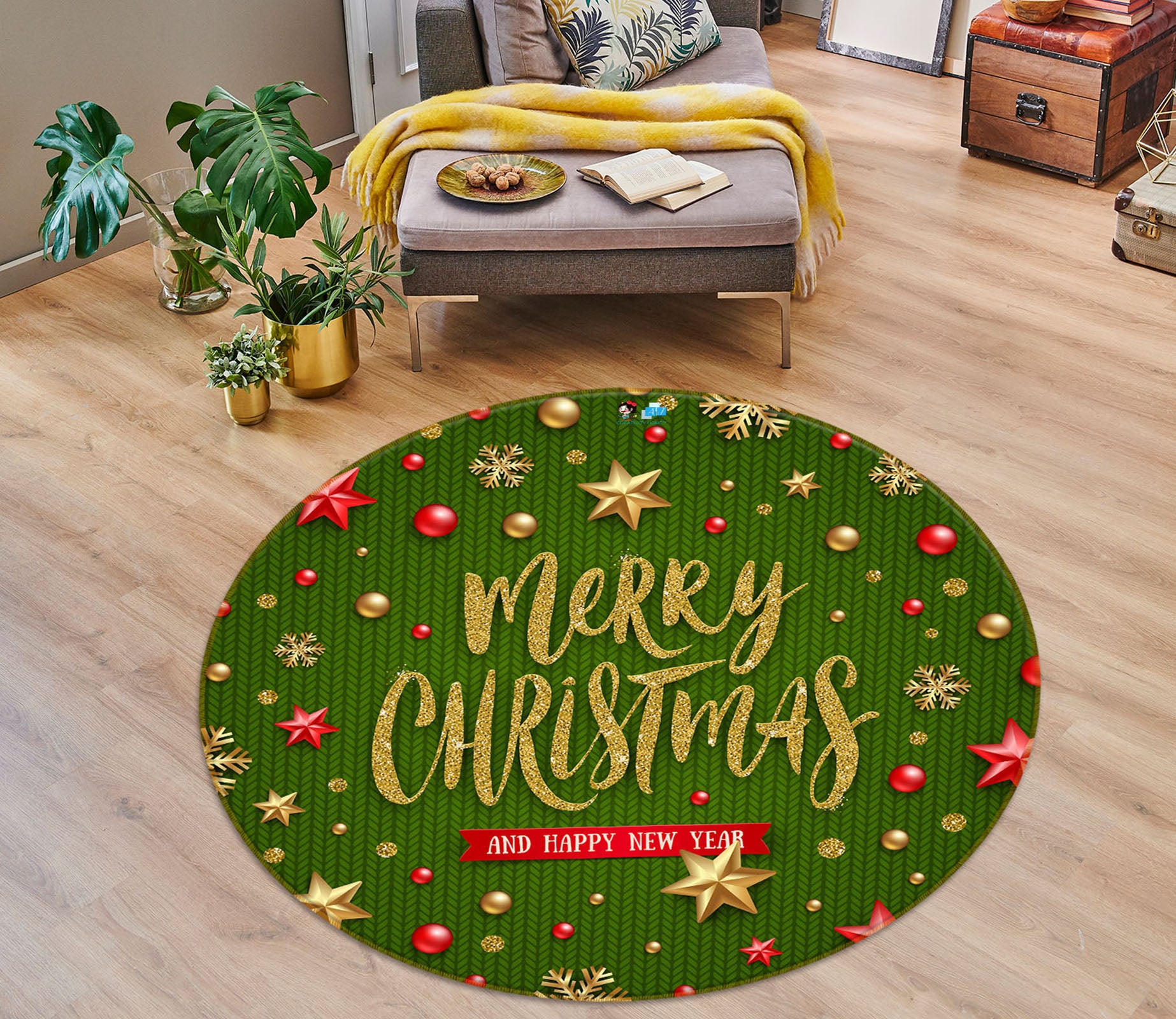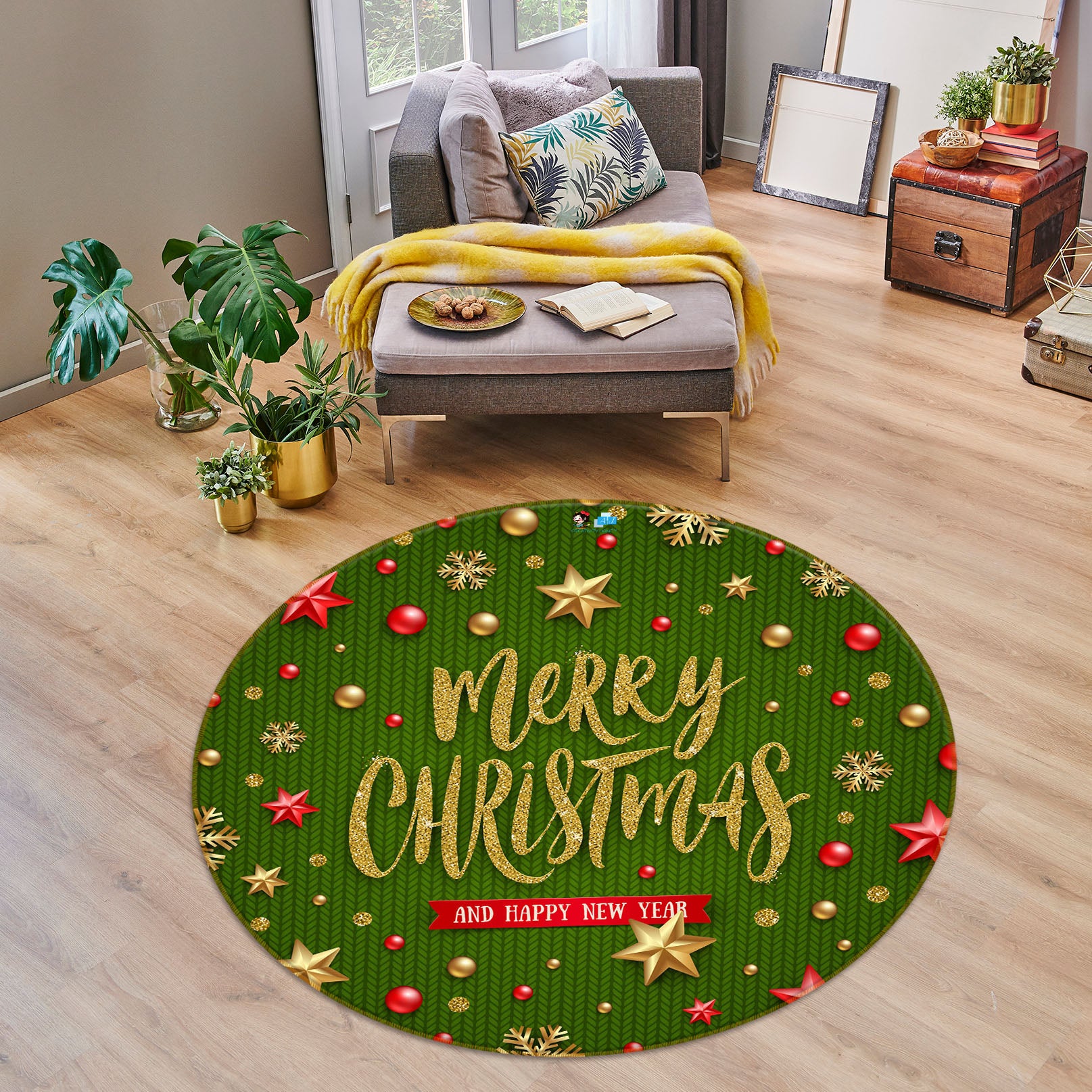 3D Letter Green Background Star 56055 Christmas Round Non Slip Rug Mat Xmas Sinsin