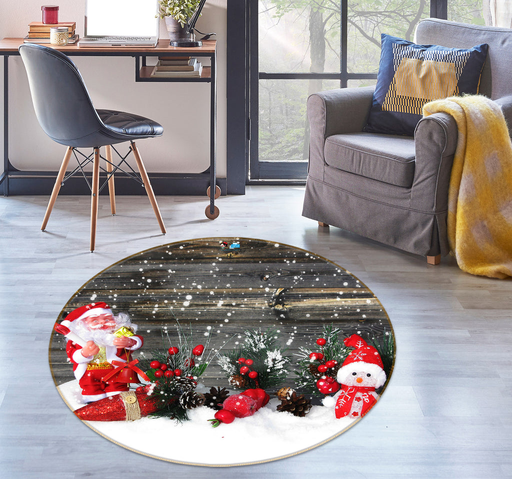 3D Snow Doll 56064 Christmas Round Non Slip Rug Mat Xmas Sinsin