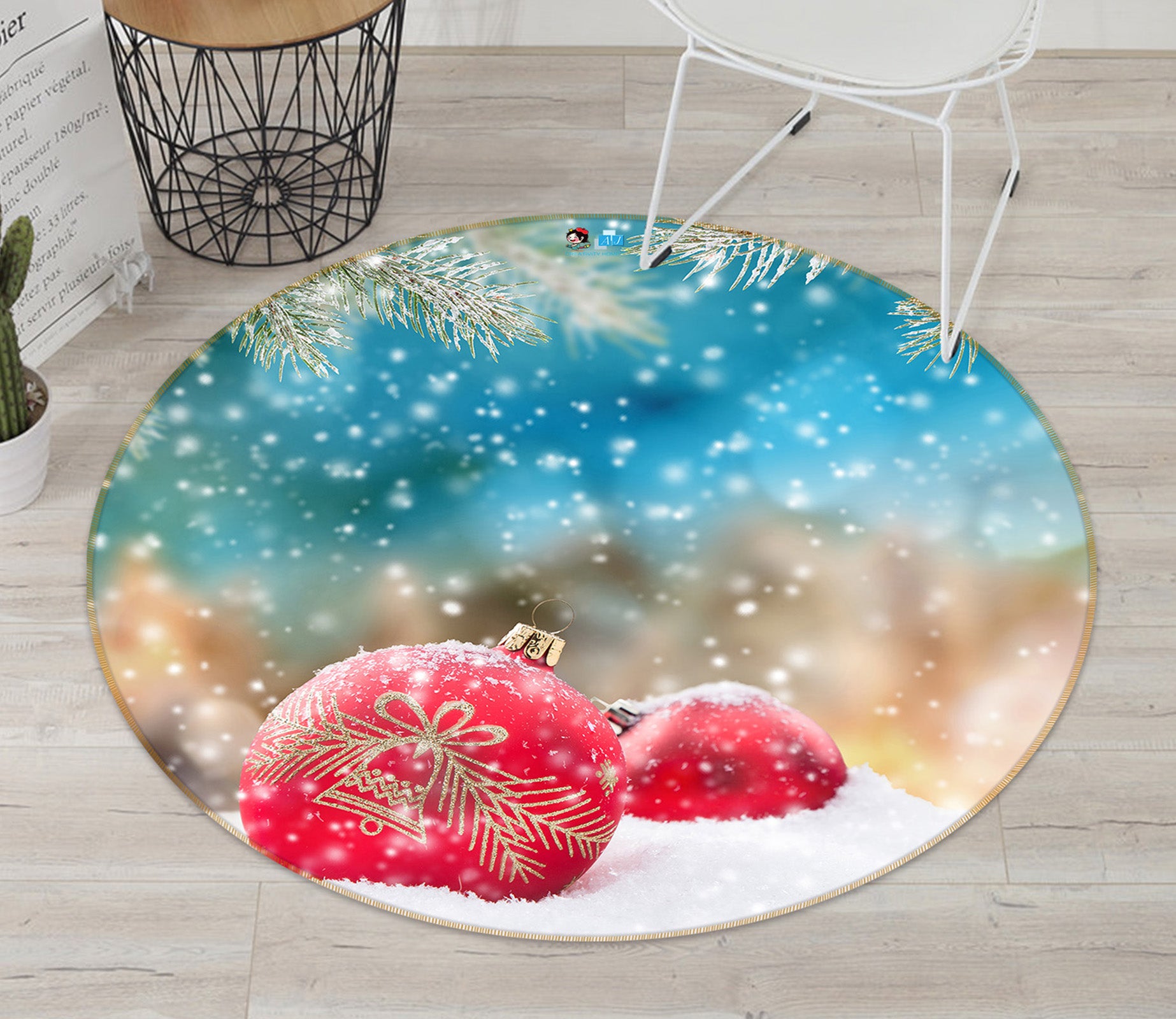 3D Snow Red Ball 56030 Christmas Round Non Slip Rug Mat Xmas Sinsin