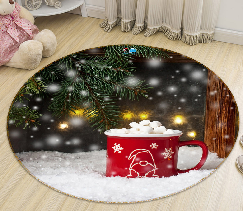 3D Snow Red Water Glass 56096 Christmas Round Non Slip Rug Mat Xmas Sinsin