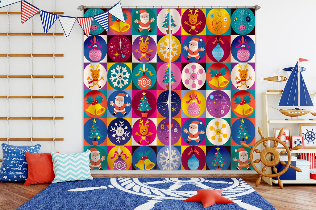 3D Snowflake Santa Circle Pattern 53077 Christmas Curtains Drapes Xmas Sinsin