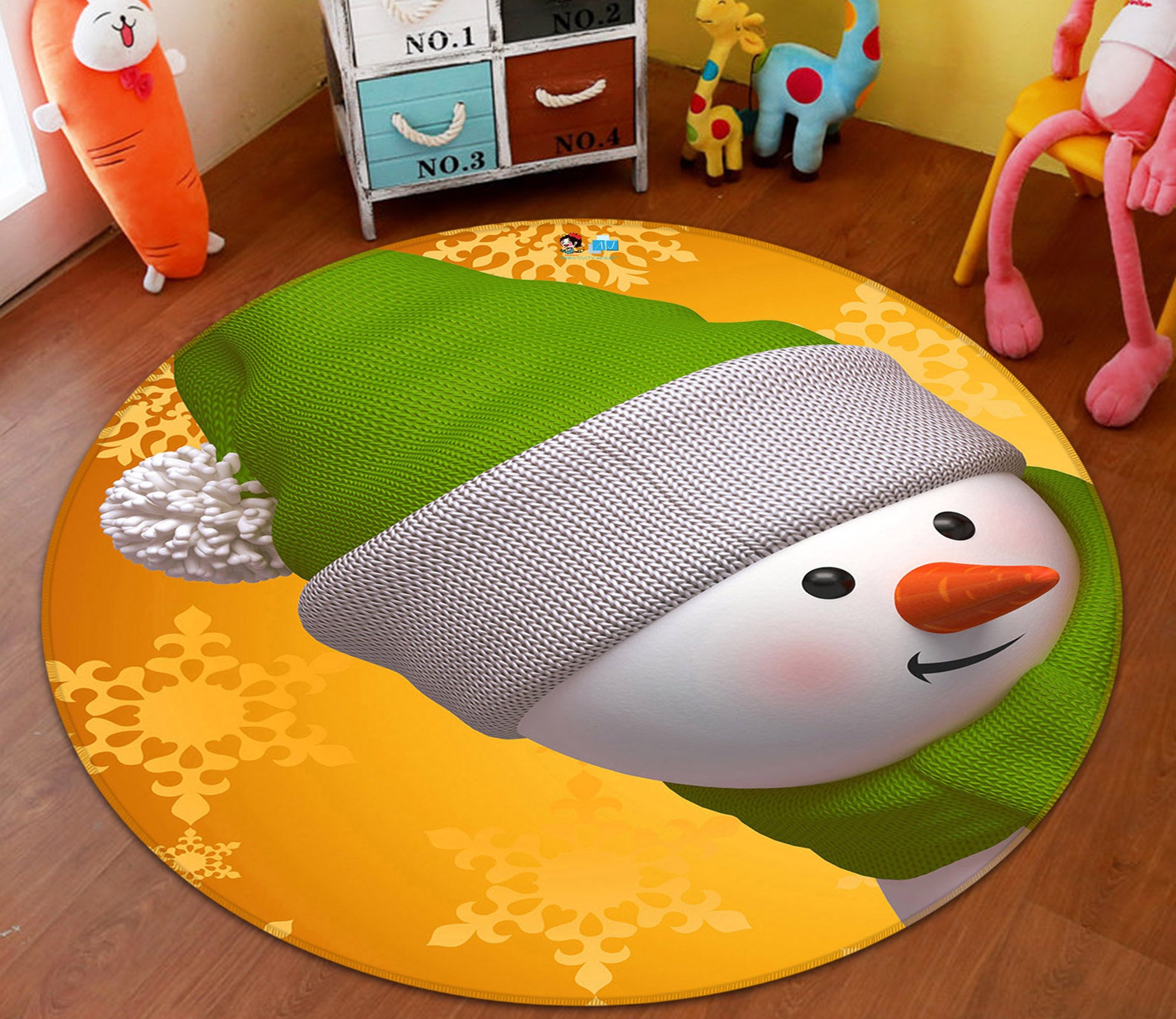 3D Snowman 56016 Christmas Round Non Slip Rug Mat Xmas Sinsin