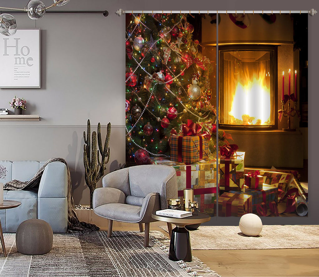 3D Tree Gift Fireplace 53055 Christmas Curtains Drapes Xmas Sinsin
