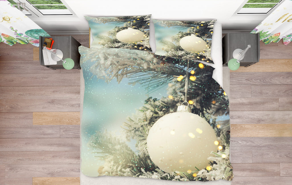 3D White Ball 52133 Christmas Quilt Duvet Cover Xmas Bed Pillowcases Sinsin