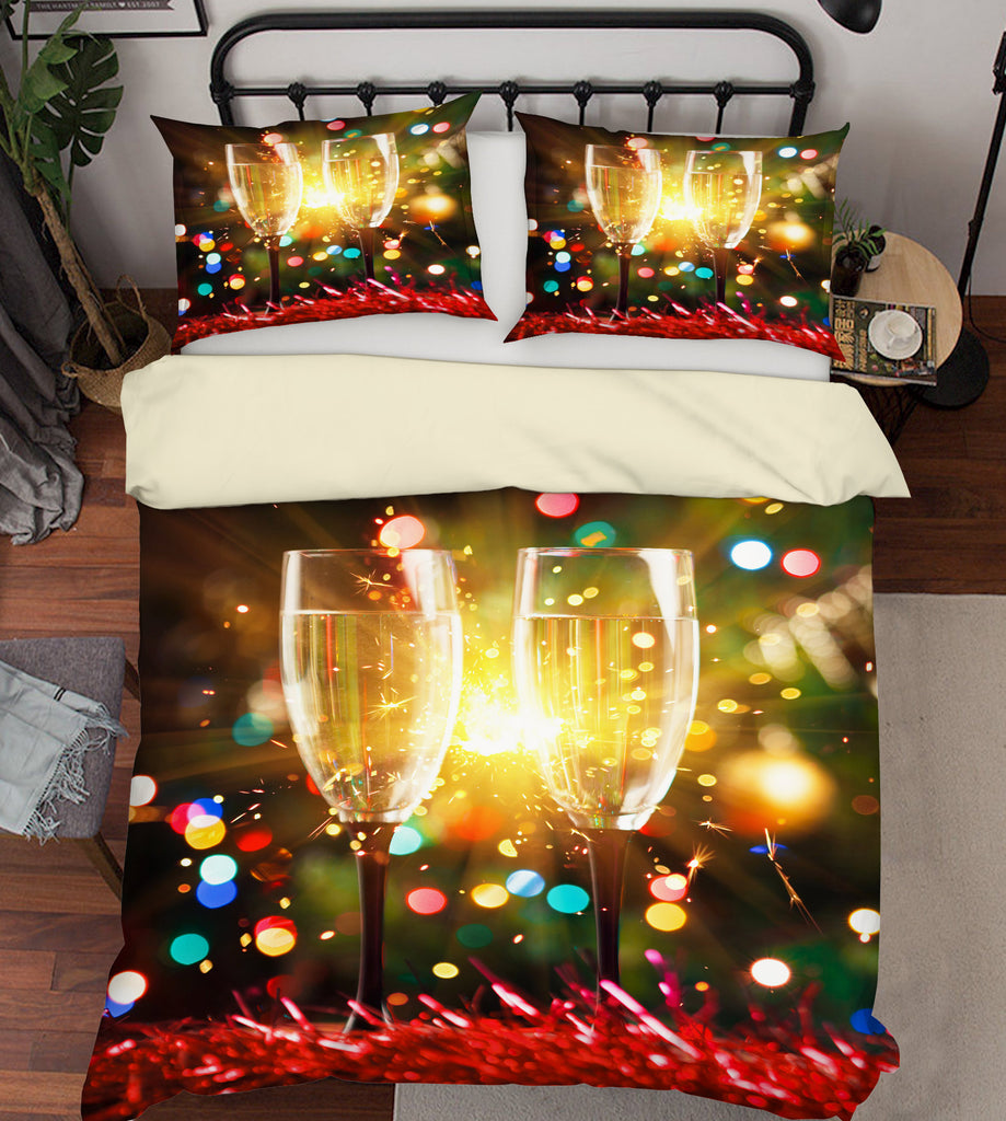 3D Wine Glass 52122 Christmas Quilt Duvet Cover Xmas Bed Pillowcases