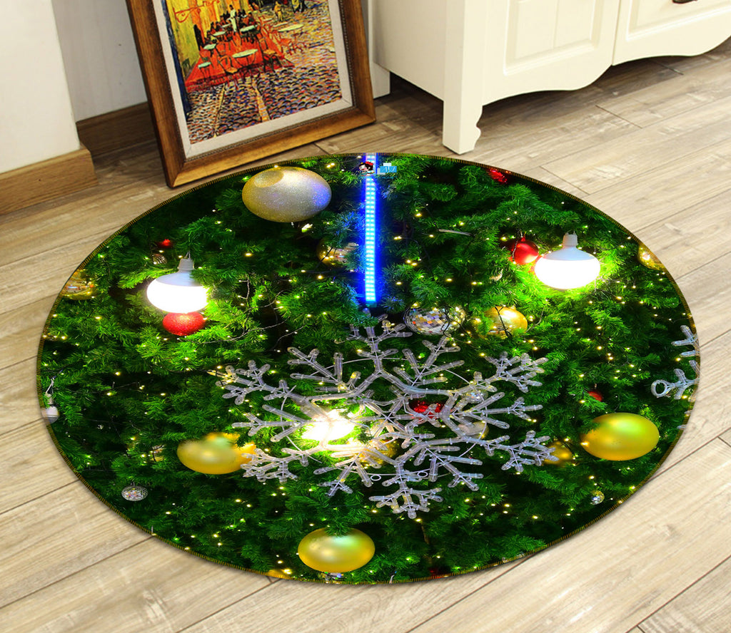 3D Yellow Ball 56086 Christmas Round Non Slip Rug Mat Xmas Sinsin