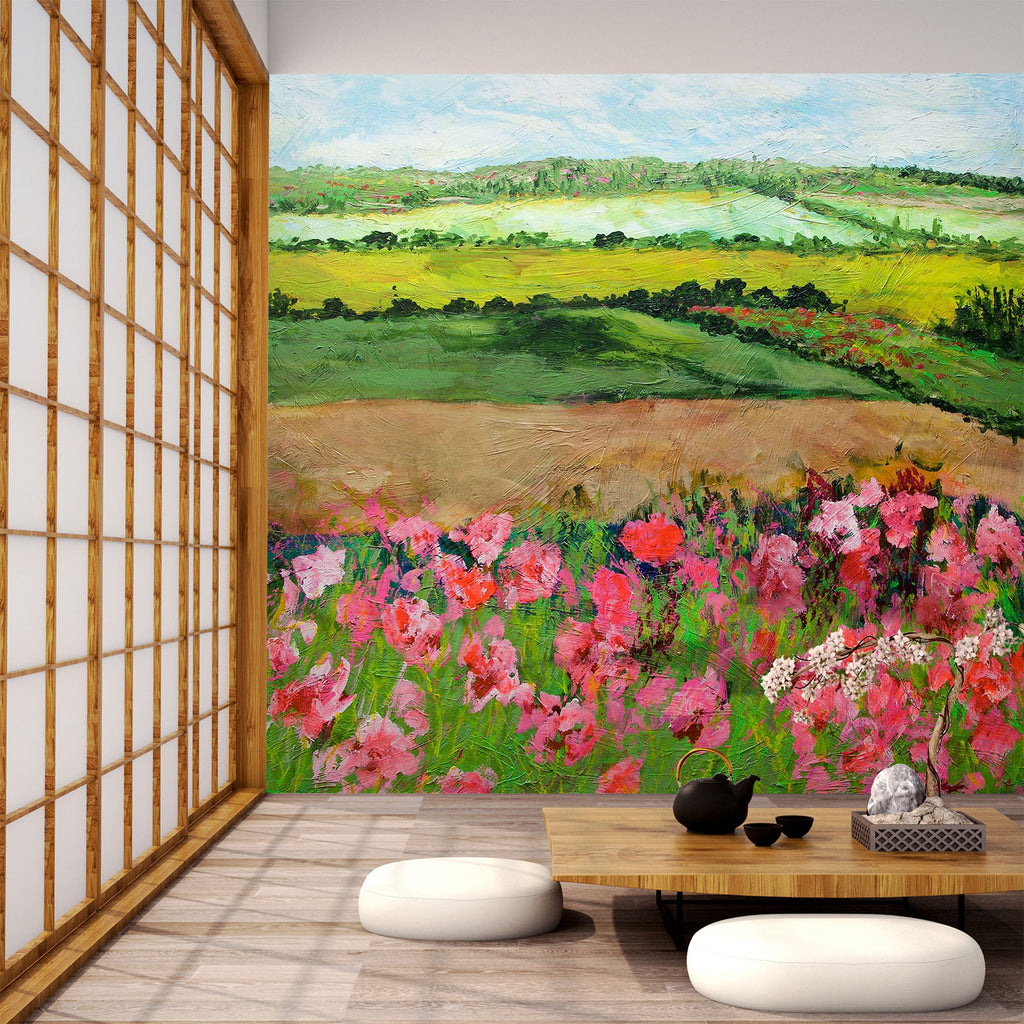 Make sure the wall surface is flat, clean and smooth. A clean and dry wall will help the adhesive from your wall mural to keep its stickiness. Put all panels on the ground, check the order. Measure and write down the dimensions of each panel. Mark vertical guidelines according to the panel's dimensions. Leave 2-3cm overlap between panels.
