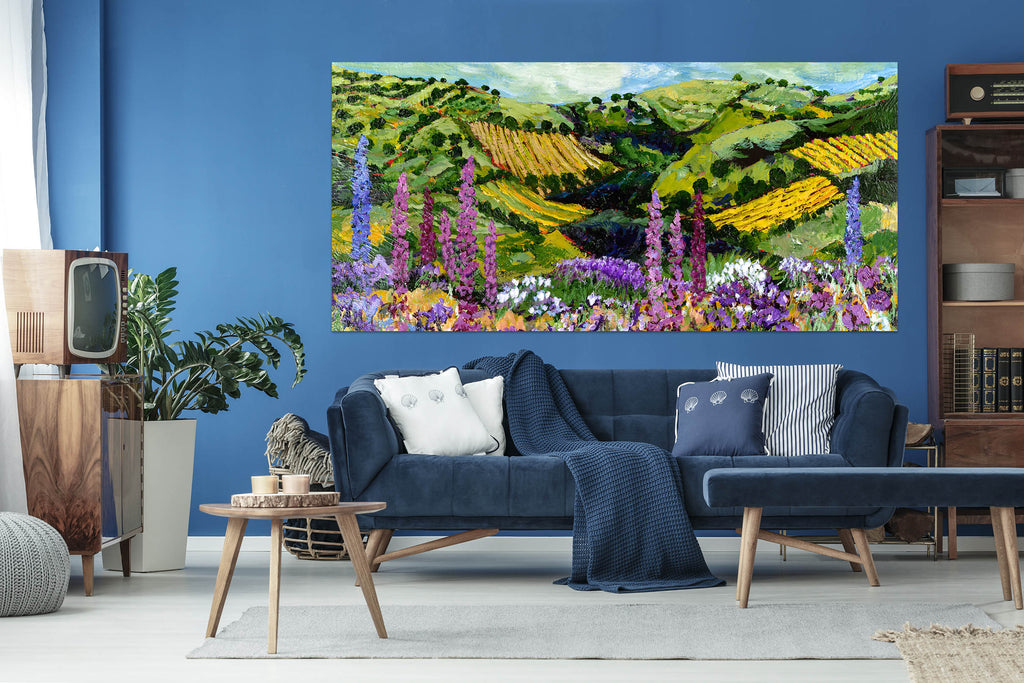 Make sure the wall surface is flat, clean and smooth. A clean and dry wall will help the adhesive from your wall mural to keep its stickiness. Put all panels on the ground, check the order. Measure and write down the dimensions of each panel. Mark vertical guidelines according to the panel's dimensions. Leave 2-3cm overlap between panels.
