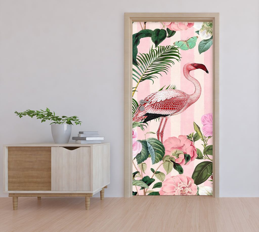 3D Flamingo Flower Bush 118126 Andrea Haase Door Mural Sinsin