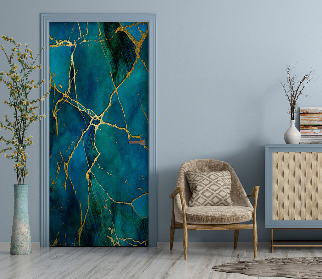 3D Green Marbled Gold Crack 10298 Andrea Haase Door Mural Sinsin