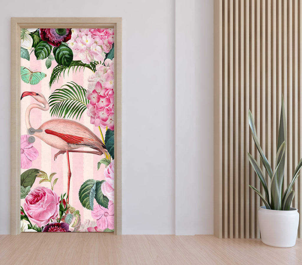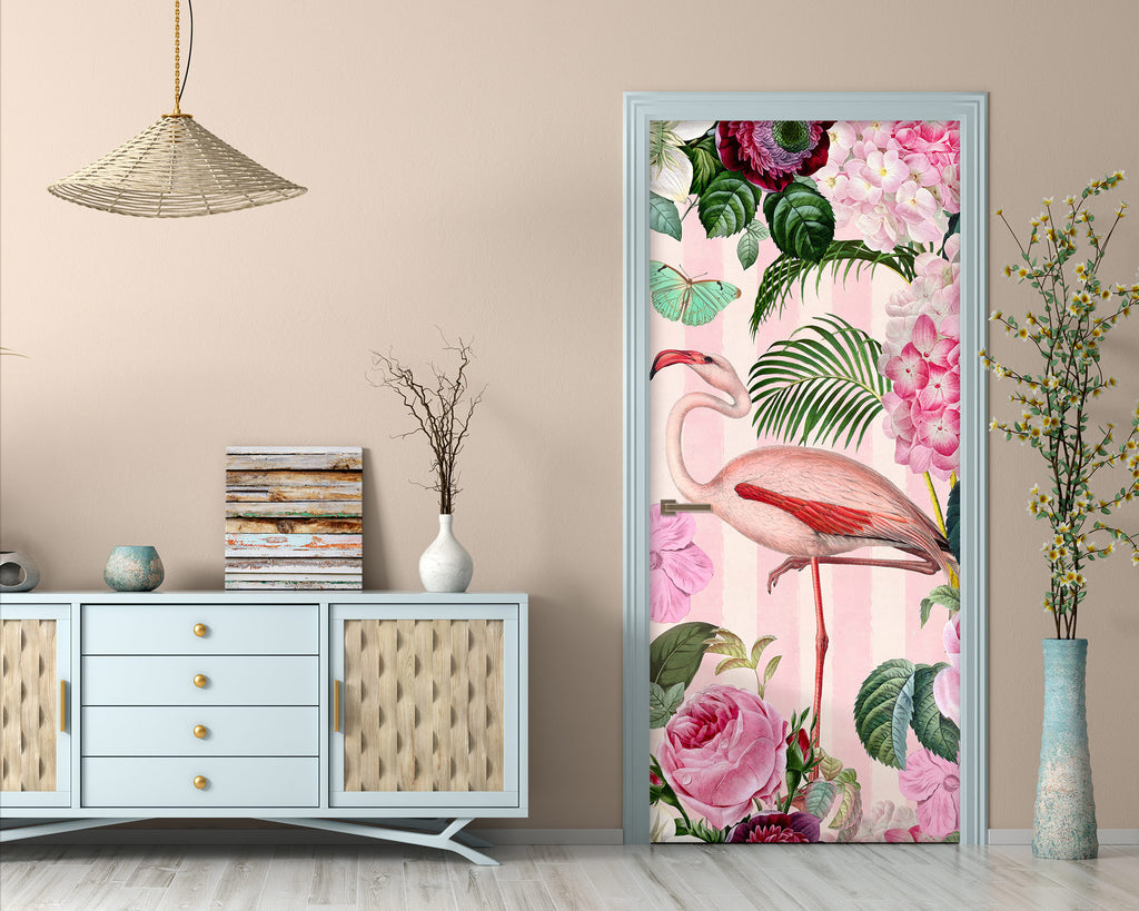 3D Pink Flamingo Flower Bush 118127 Andrea Haase Door Mural Sinsin