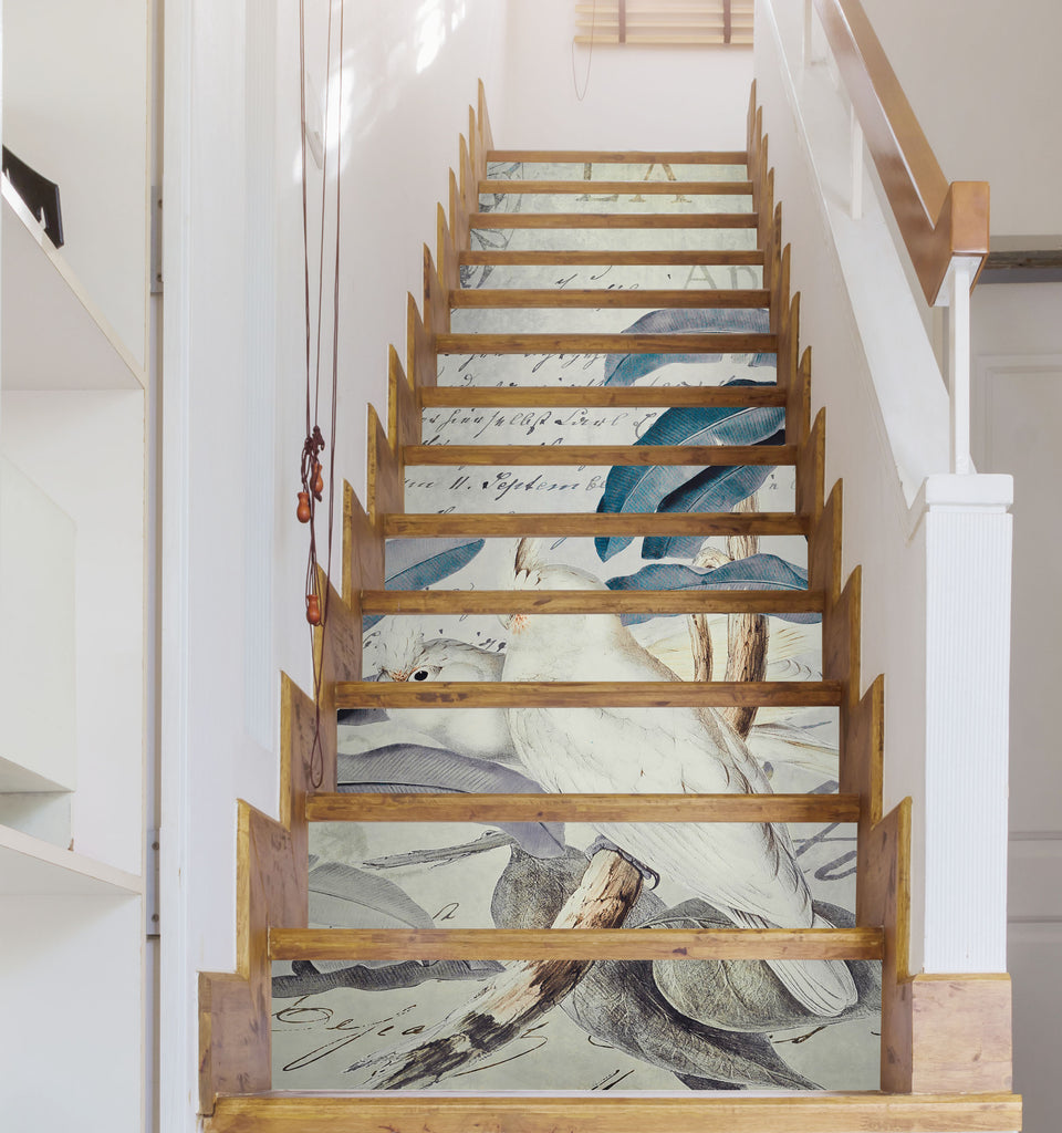 3D White Parrot Branches 11012 Andrea Haase Stair Risers Sinsin