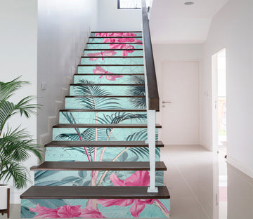 3D Green Leaves Pink Flowers 104116 Andrea Haase Stair Risers