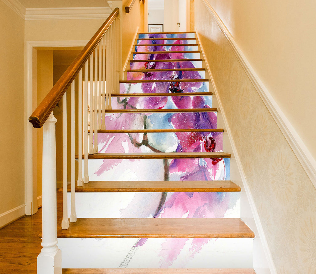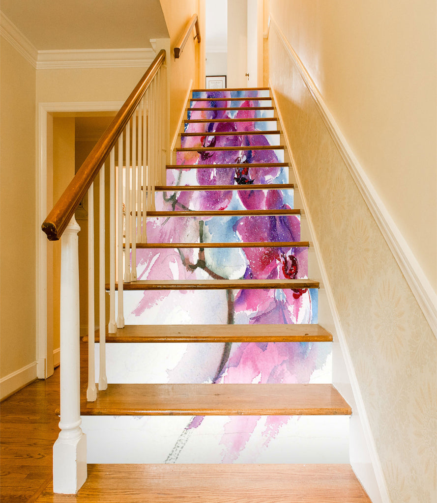 3D Pink Flowers 9808 Anne Farrall Doyle Stair Risers Sinsin