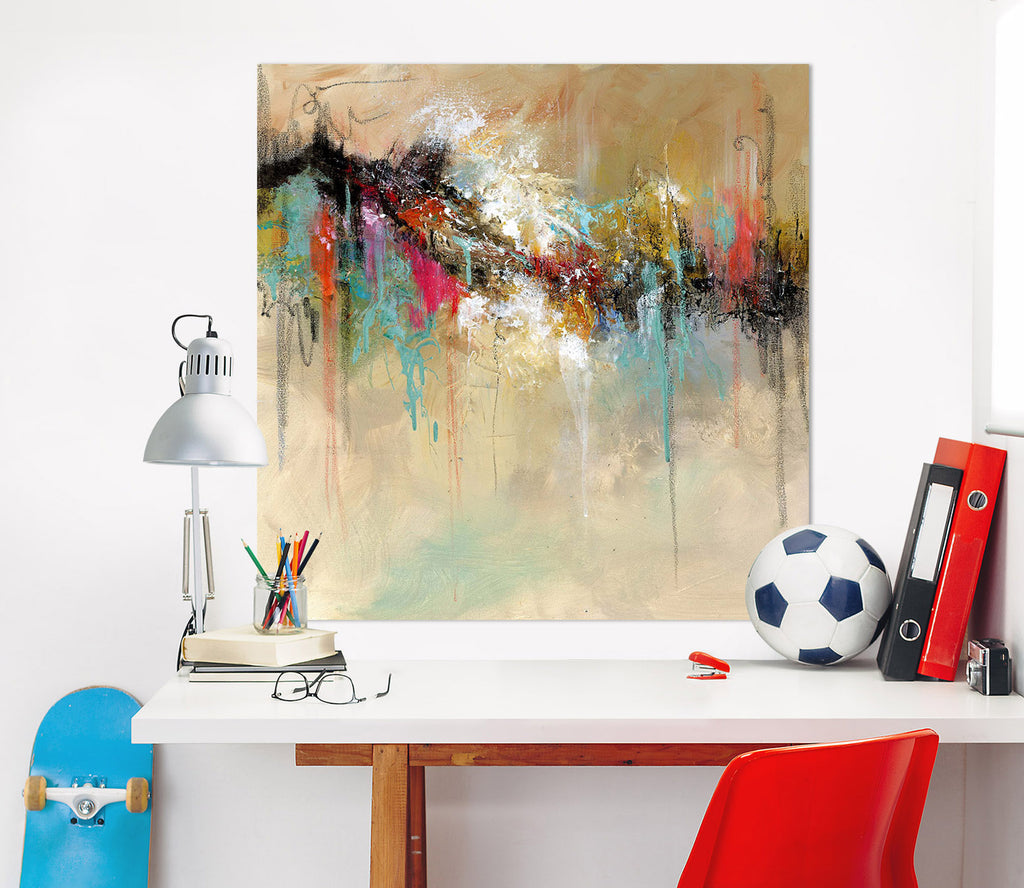 Make sure the wall surface is flat, clean and smooth. A clean and dry wall will help the adhesive from your wall mural to keep its stickiness. Put all panels on the ground, check the order. Measure and write down the dimensions of each panel. Mark vertical guidelines according to the panel's dimensions. Leave 2-3cm overlap between panels.