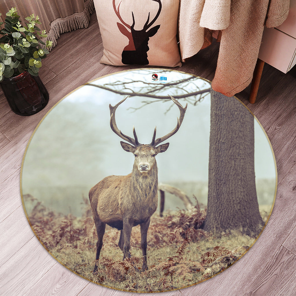 3D Animal Elk 7573 Assaf Frank Rug Round Non Slip Rug Mat