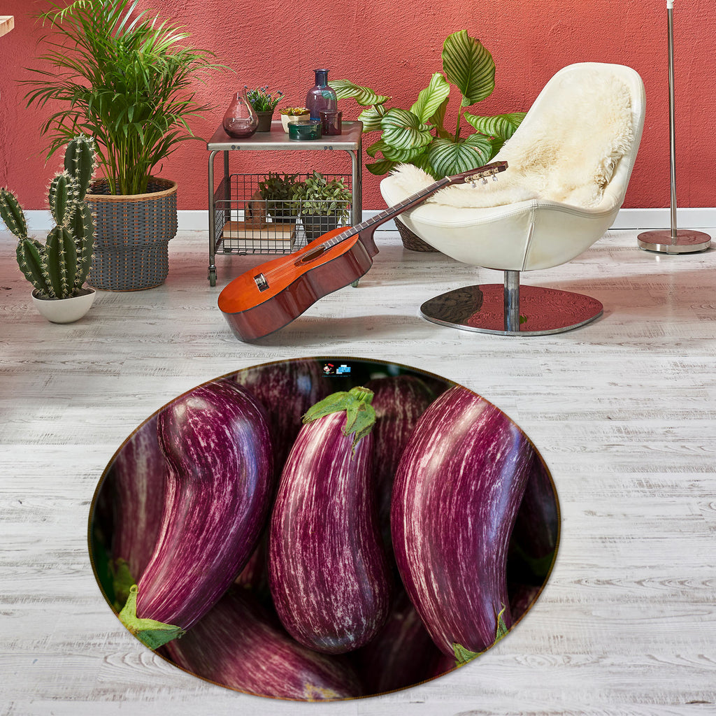 3D Vegetable Eggplant 7558 Assaf Frank Rug Round Non Slip Rug Mat Amy