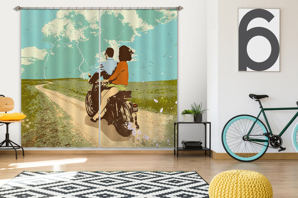 3D Motorcycle Travel 055 Showdeer Curtain Curtains Drapes Dai