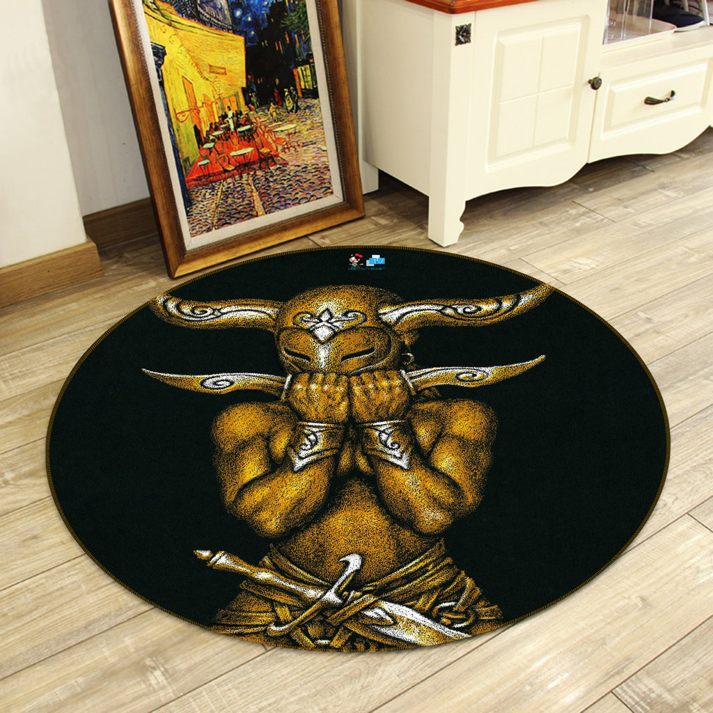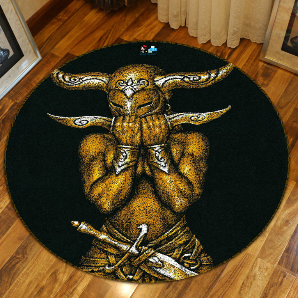 3D Metallic Horn Mask Man 6108 Ciruelo Rug Round Non Slip Rug Mat Sinsin
